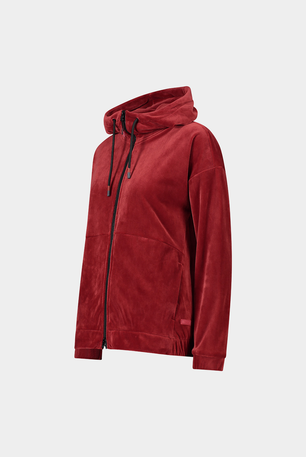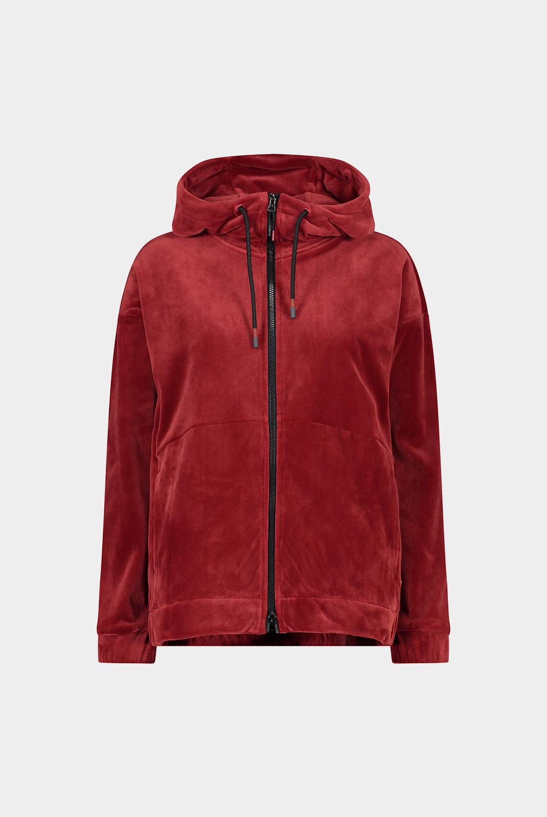 • Реглан на блискавці на всю довжину з еластичної тканини, яка поєднує комфорт і свободу рухів з особливим гламурним стилем. Модель дарує приємні відчуття при контакті зі шкірою. Регульований каптур з куліскою і дві кишені на стегнах доповнюють виріб.