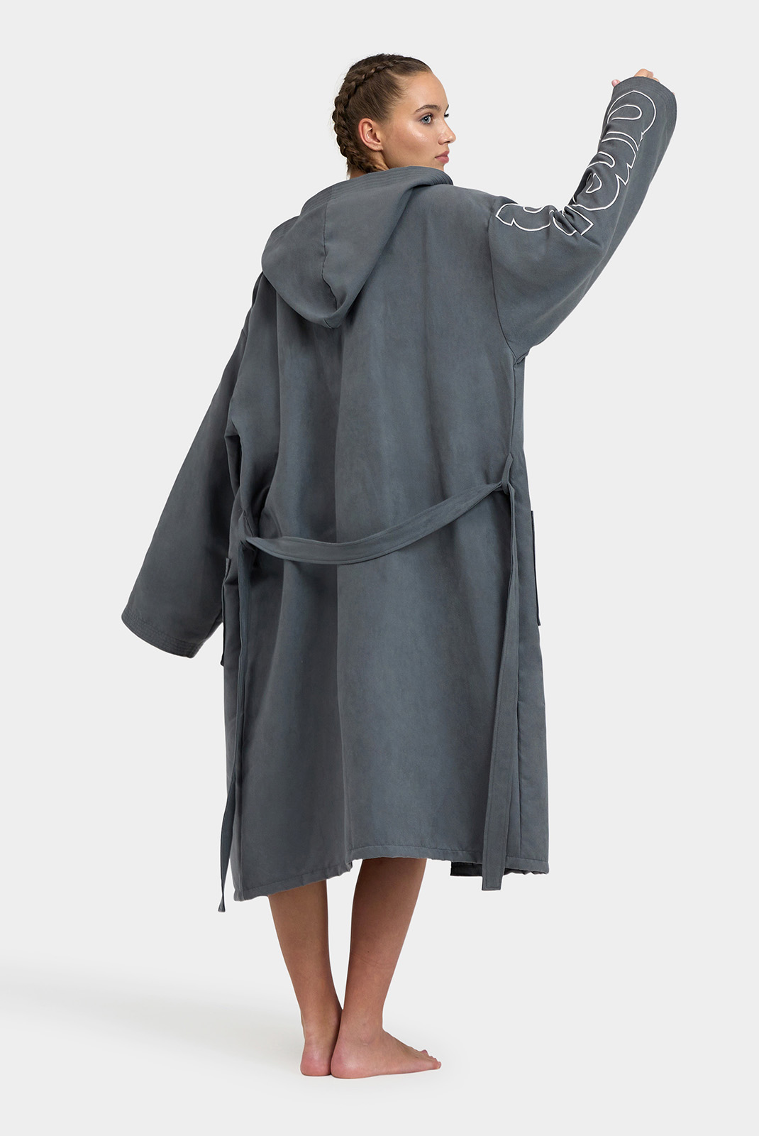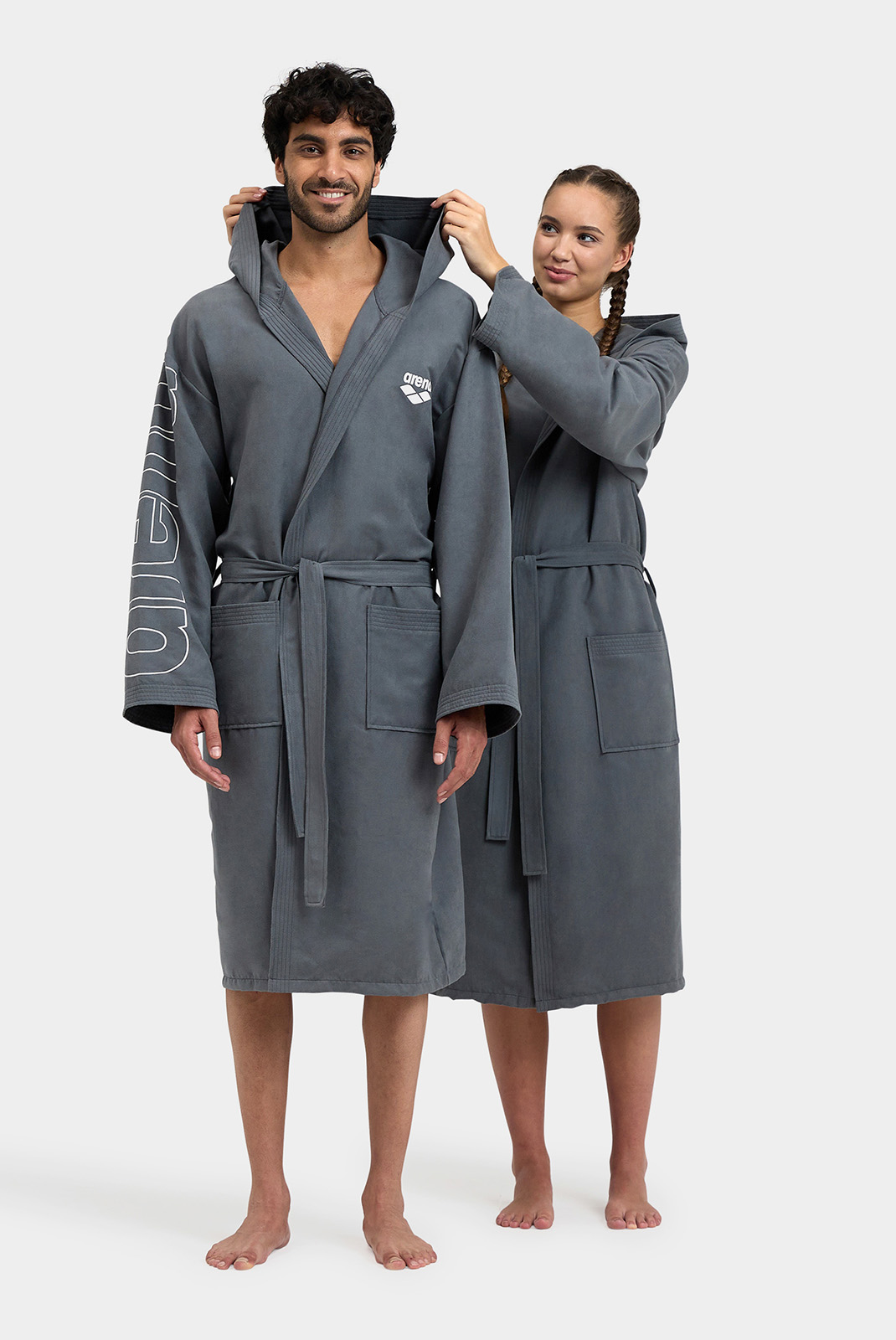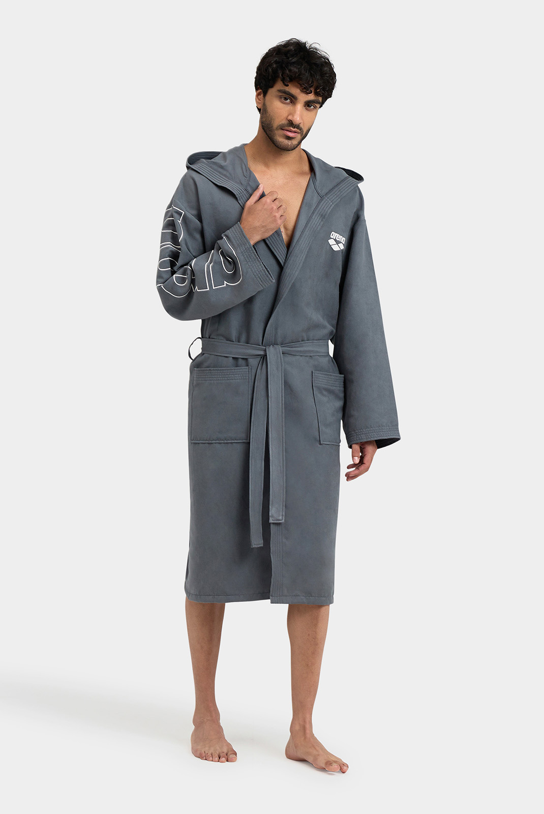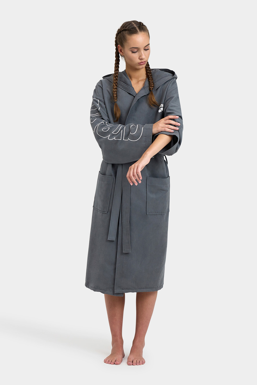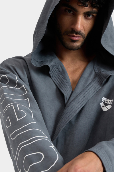 М'який та легкий, цей практичний халат має великий капюшон та зручні кишені для зберігання шампуню, окулярів та багато іншого. Мікрофібра - ідеальна тканина, оскільки вона вбирає воду, не збільшуючись у розмірах, що спрощує транспортування. Модель прикрашена фірмовим ім'ям та оздобленням контрастного кольору. Ремінь для індивідуальної посадки.