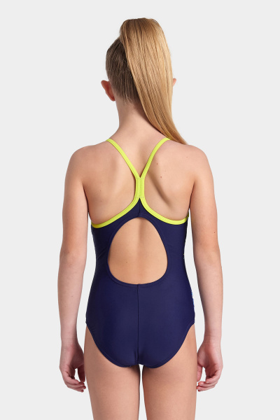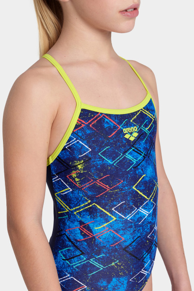 Купальник Daly для дівчаток тішить своєю графікою та захоплюючими кольоровими поєднаннями. Модель із досить тонкими бретелями та вирізом «крапля» ззаду буде із задоволенням використовуватись на заняттях плаванням, уроках серфінгу або просто для розваги в басейні. Тканина MaxFit Eco – це тканина, отримана з відповідальних джерел та яка на 80% виготовлена з перероблених матеріалів. Він дуже еластичний, що забезпечує дивовижний комфорт та гнучкість у воді. Купальник стійкий до хлору та захищає шкіру від ультрафіолетових променів, відповідає всім вимогам.