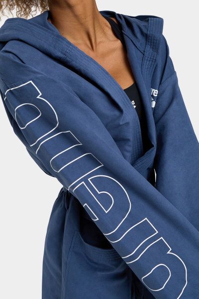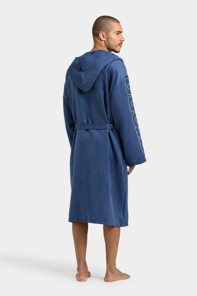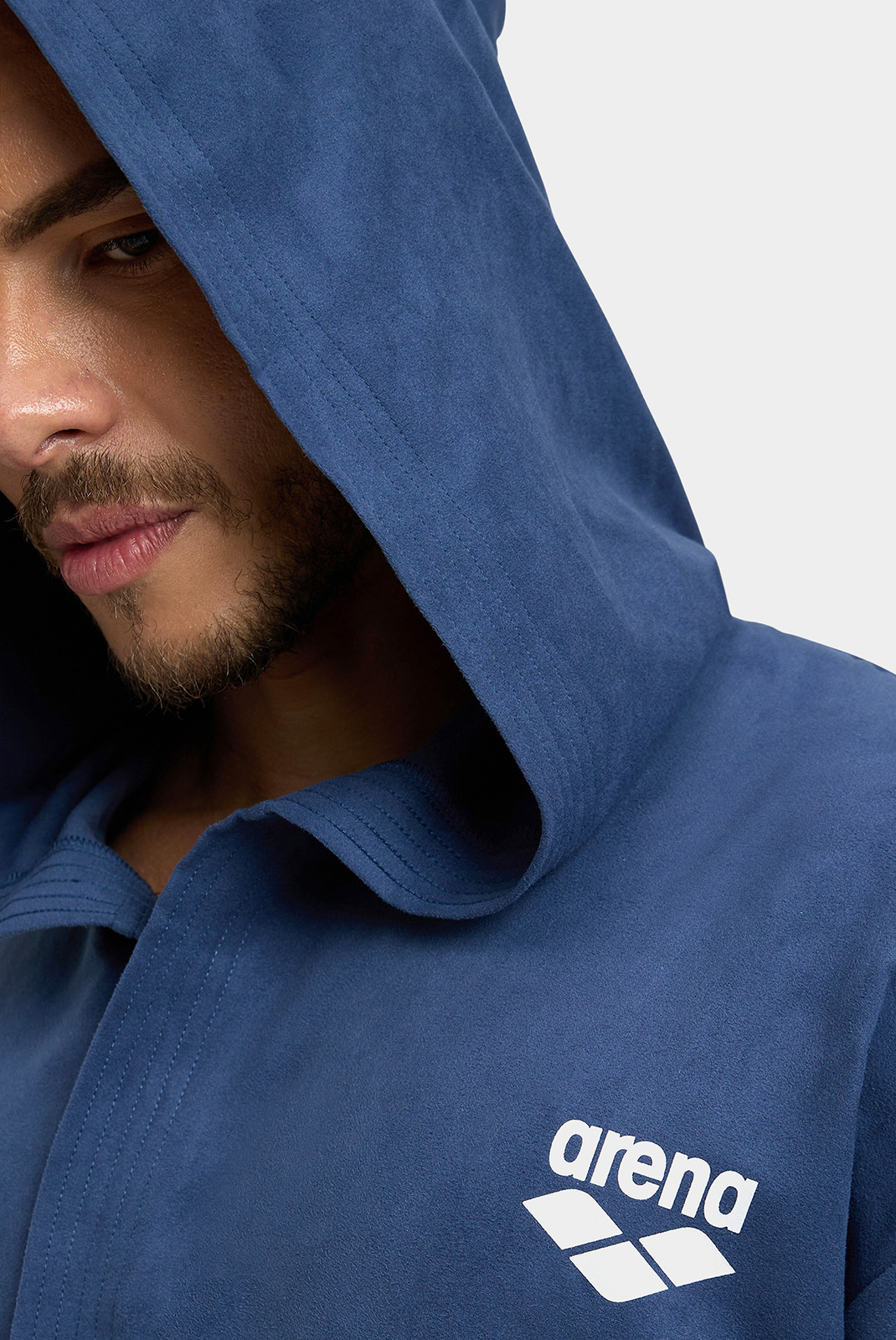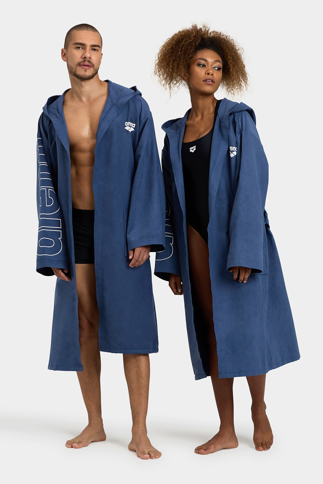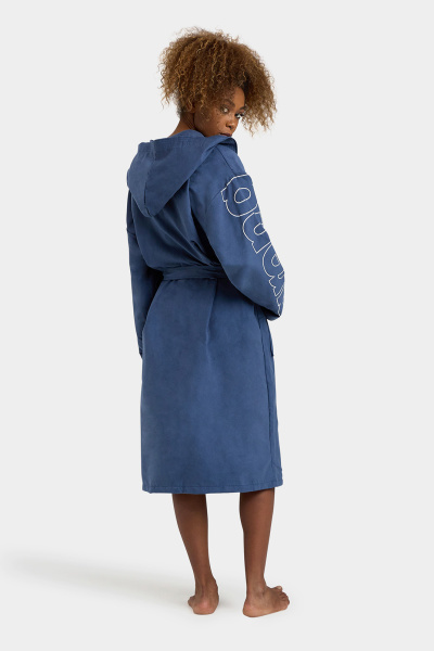 М'який і легкий, цей практичний халат має великий капюшон для сушіння вологого волосся і зручні кишені для зберігання шампуню, окулярів і багато чого іншого. Мікрофібра - ідеальна тканина, тому що вона вбирає воду, не збільшуючись в об'ємі, що полегшує транспортування. Модель прикрашена фірмовим ім'ям і обробкою контрастного кольору. Пояс для індивідуальної посадки.