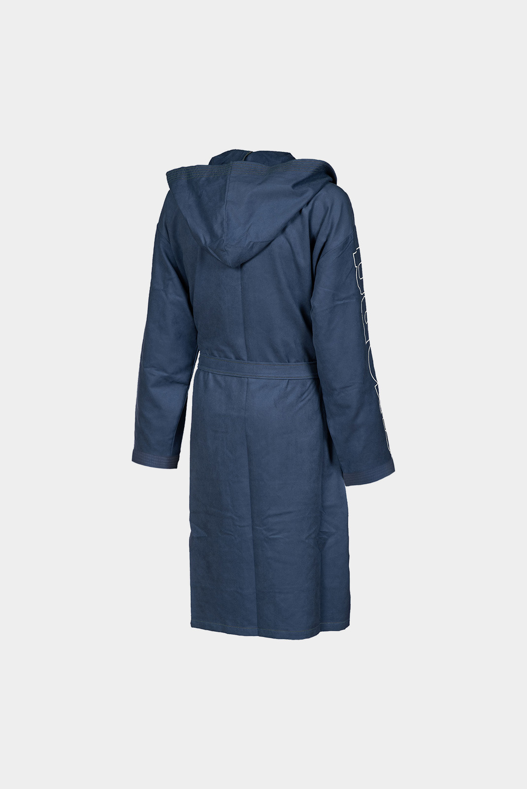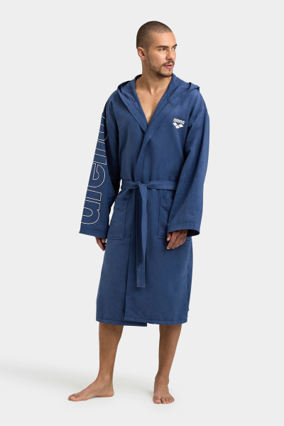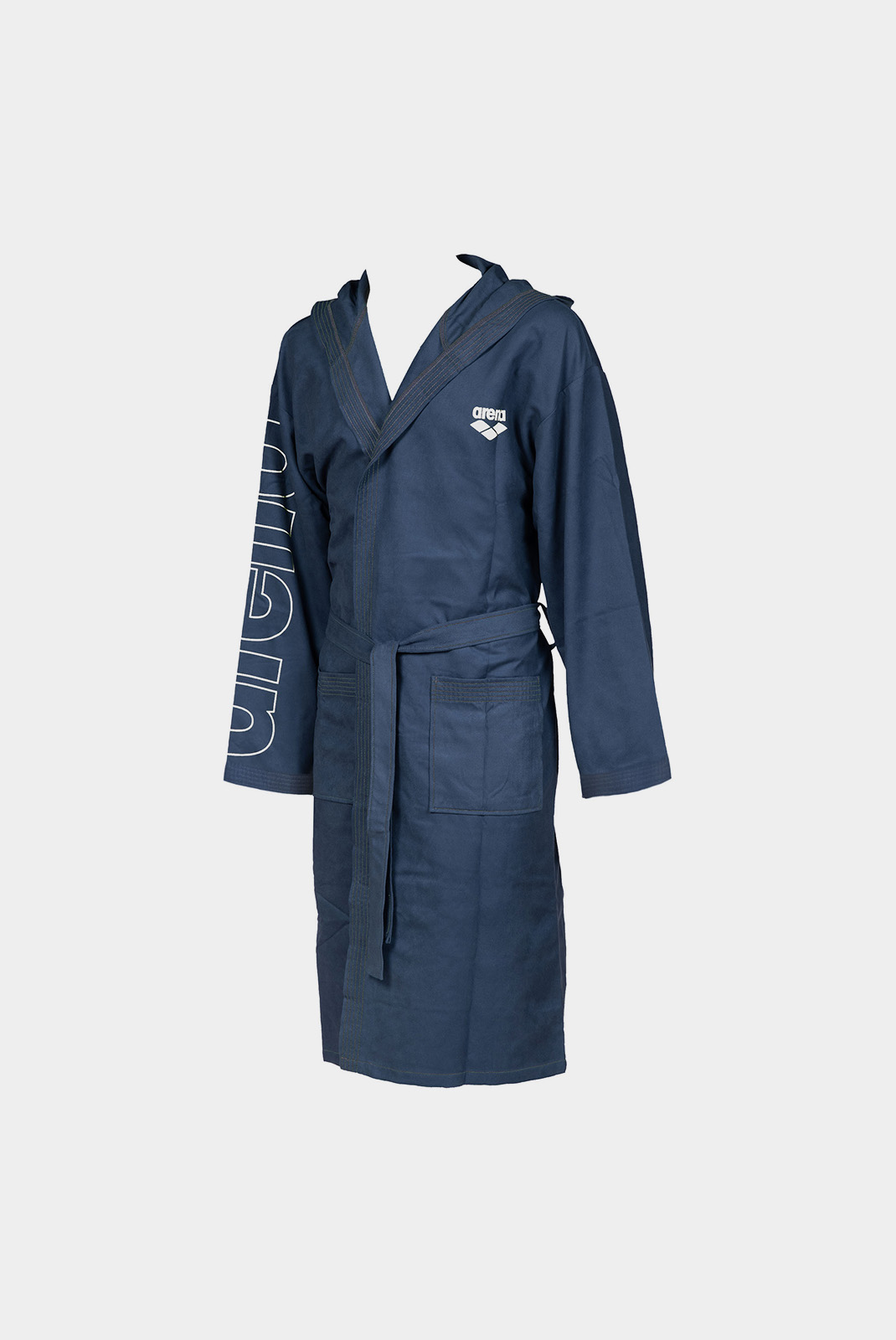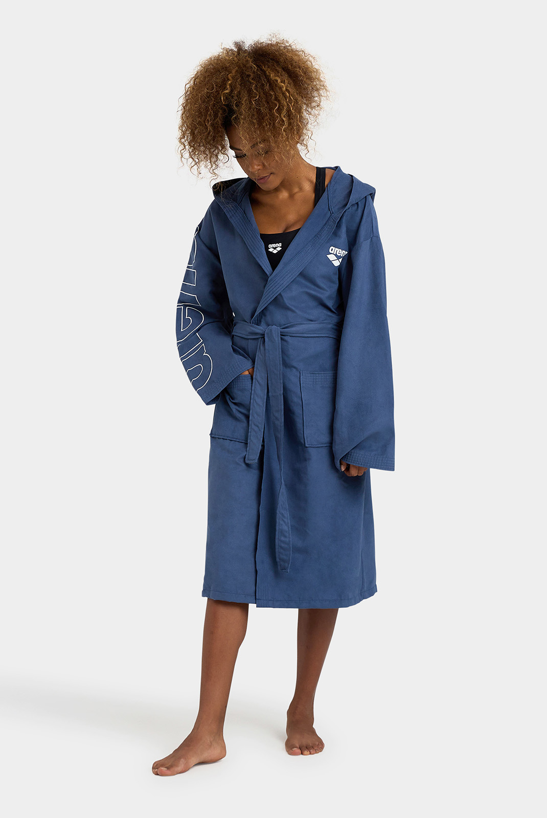 М'який і легкий, цей практичний халат має великий капюшон для сушіння вологого волосся і зручні кишені для зберігання шампуню, окулярів і багато чого іншого. Мікрофібра - ідеальна тканина, тому що вона вбирає воду, не збільшуючись в об'ємі, що полегшує транспортування. Модель прикрашена фірмовим ім'ям і обробкою контрастного кольору. Пояс для індивідуальної посадки.