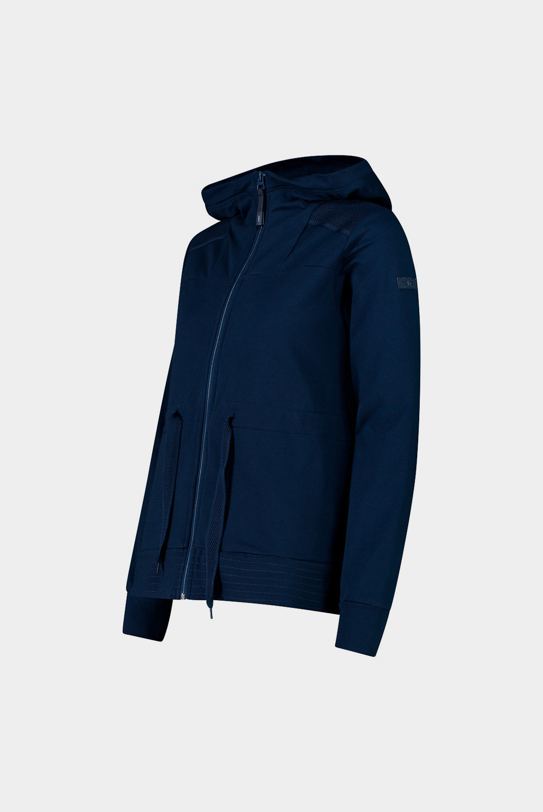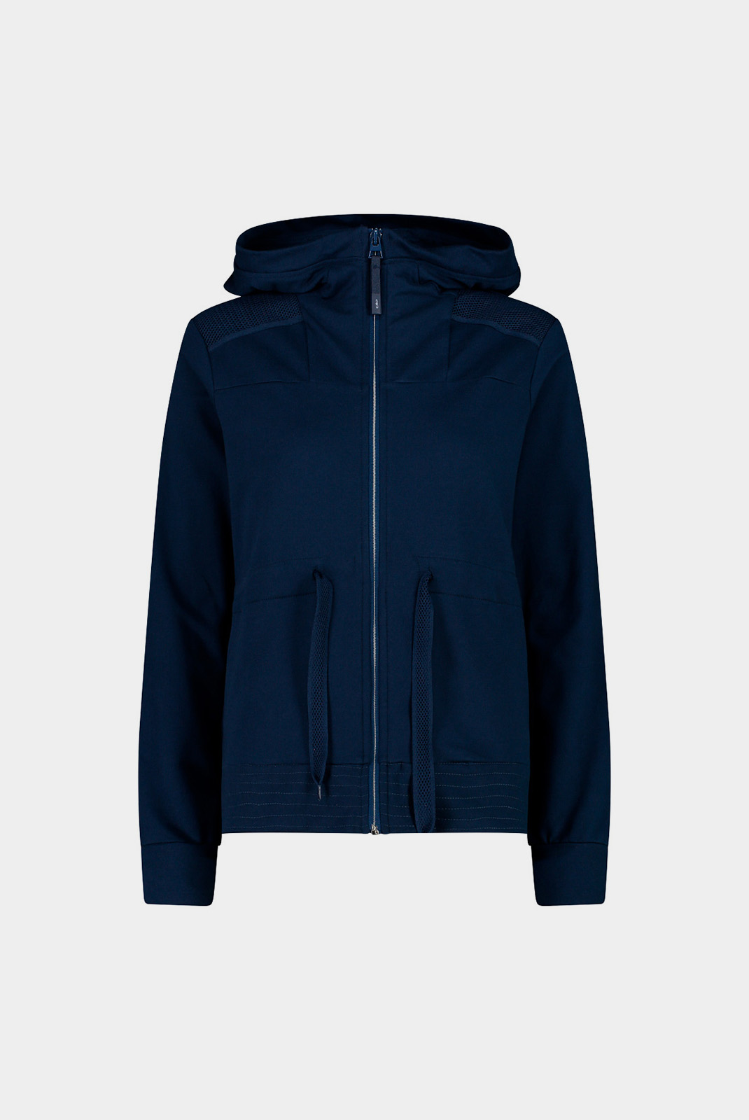 • Фліс з талією, що стягується, і фіксованим капюшоном. Це одяг з центральною застібкою-блискавкою і двома бічними кишенями, з сучасним дизайном. Поєднання стилю і практичності робить цю модель придатною на всі випадки життя.