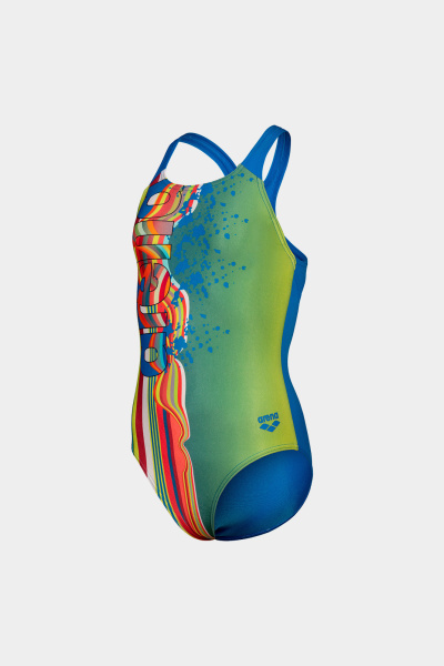 Додайте сплеск художньої творчості в її тренування в басейні з купальником Palette для дівчаток! Сміливий і яскравий, з різнокольоровими смужками, цей суцільний купальник з підтримувальними бретелями, відкритою спиною і бездоганною посадкою. Виготовлений з високостійкої до хлору і швидковисихаючої тканини MaxLife Eco. Тканина MaxLife Eco - це тканина, виготовлена з використанням щонайменше 50% переробленого поліестеру. Пройшовши багатогодинні випробування, цей текстиль забезпечує максимальну стійкість до хлору, тому ви можете бути впевнені, що купальник вашої дитини прослужить довго. Швидко сохне і захищає від ультрафіолету, забезпечуючи комфорт і захист.