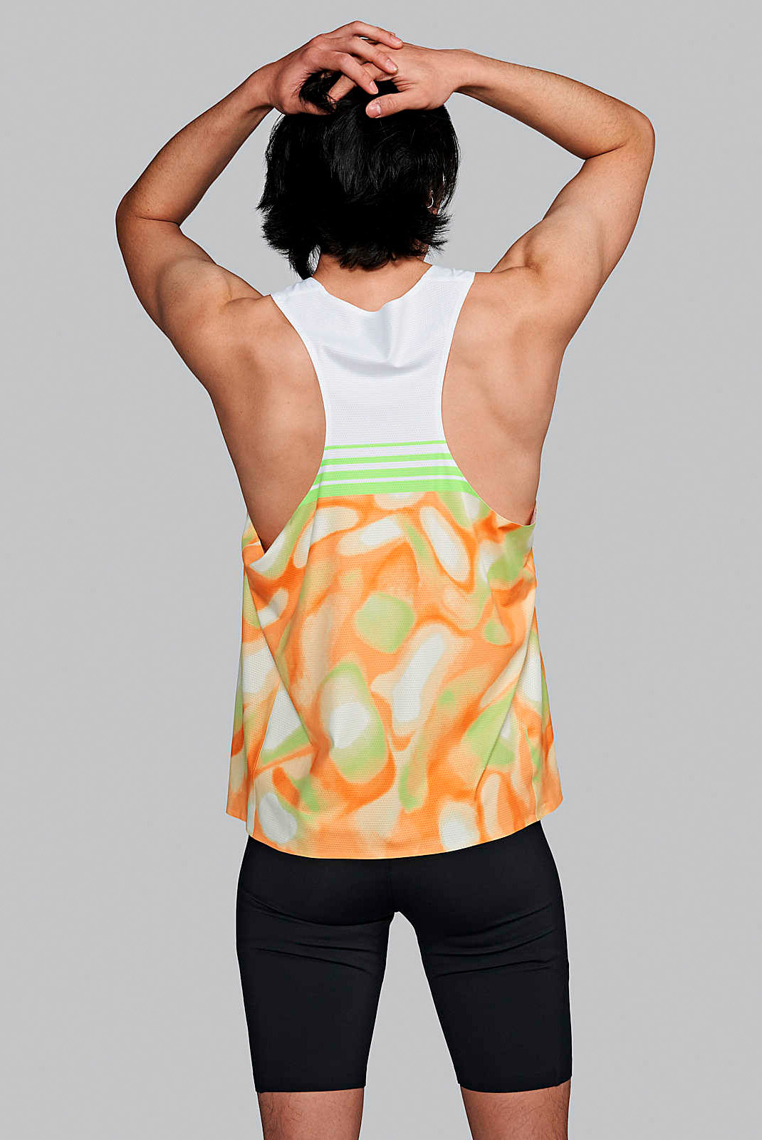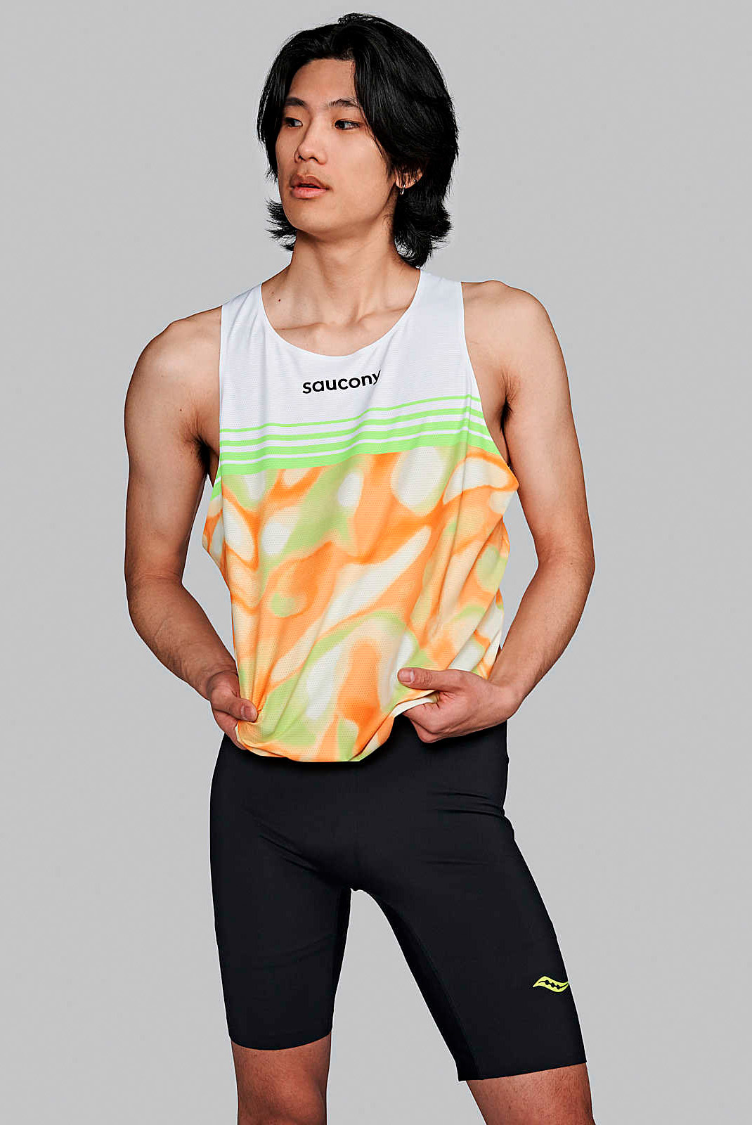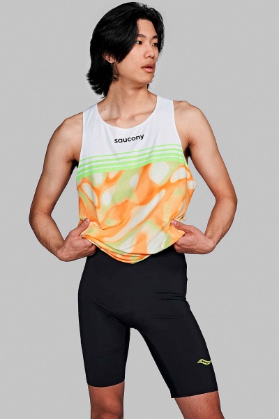 Saucony ELITE SINGLET — надлегка чоловіча майка, створена для максимального комфорту під час бігу. Вільний крій і перфоровані вставки забезпечують ефективну вентиляцію, а гладкі безшовні деталі запобігають натиранню. Сучасний синтетичний матеріал з вологовідвідними властивостями допомагає зберігати сухість навіть під час інтенсивних тренувань.