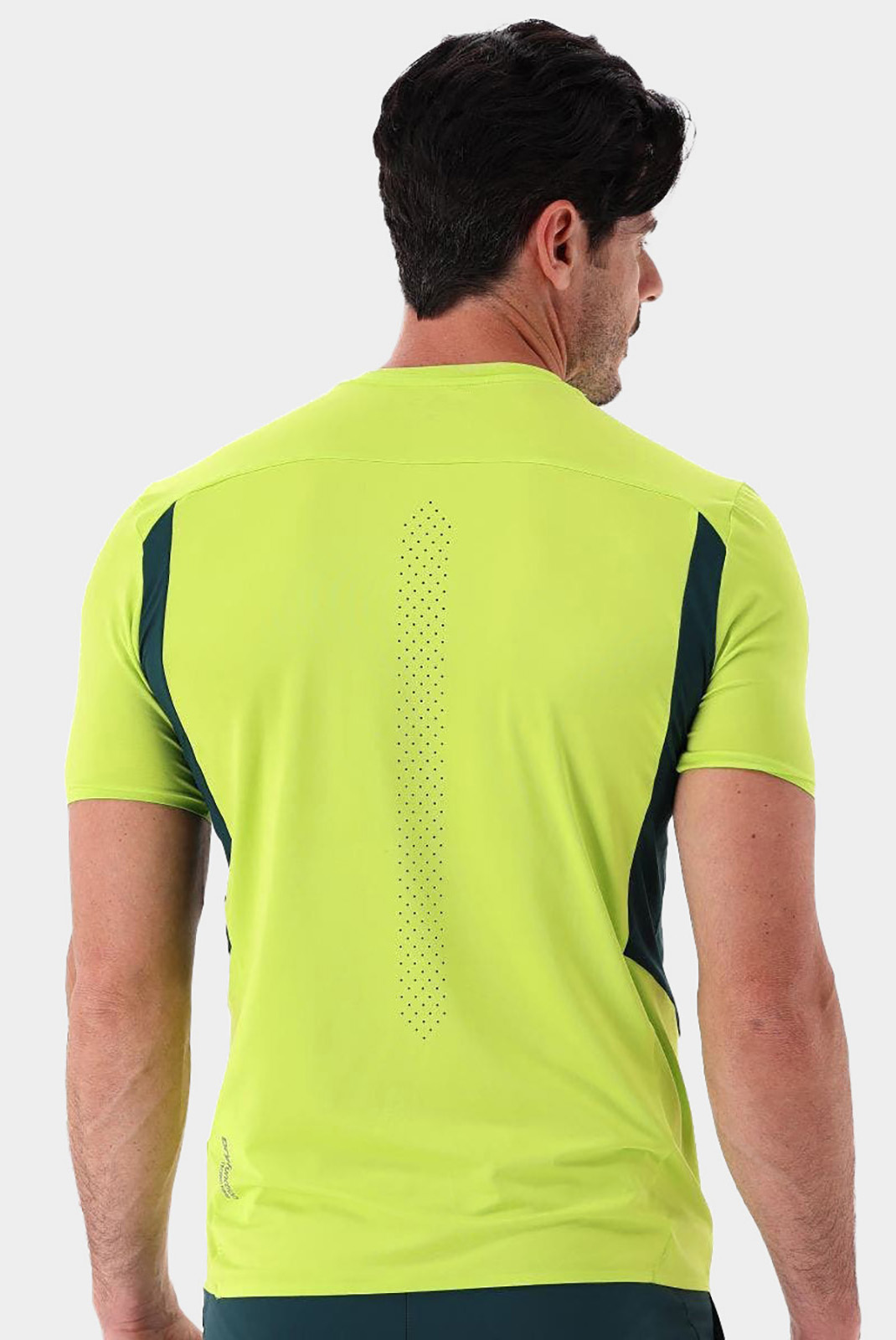 Футболка з колекції Unlimitech створена для найінтенсивніших тренувань, забезпечуючи комфорт і високу продуктивність. Технологія Dry Function сприяє відведенню вологи та підтримує сухість шкіри навіть під час активних навантажень, а еластична в чотирьох напрямках тканина гарантує максимальну свободу рухів і зручну посадку. Ефект Cool Menthol Boost надає відчуття прохолоди: ментол охолоджує шкіру, а інноваційний полімер допомагає природній терморегуляції організму, підтримуючи комфортну температуру.