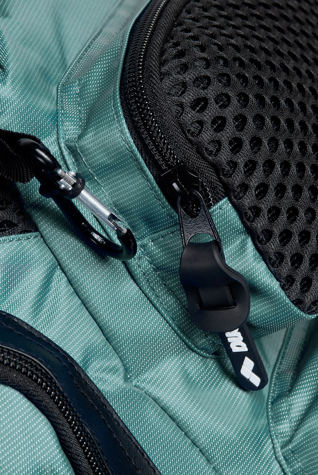 Місткий і функціональний рюкзак Arena One Go Backpack 45L з верхнім завантаженням допоможе зручно розмістити все необхідне для тренувань. Просторе основне відділення і чотири зовнішні фронтальні кишені на блискавці забезпечують безліч варіантів зберігання, а дихаючі і водонепроникні вставки дозволяють розділяти мокрі і сухі речі. Для техніки передбачений окремий відсік для ноутбука, а дві зовнішні бічні секції ідеально підійдуть для пляшок з водою. Система Aquabreathe поєднує вентиляцію і захист від вологи, підтримуючи сухість екіпіровки. М'яка дихаюча спинка гарантує комфорт при перенесенні, а ремінь для кріплення до валізи і карабін роблять рюкзак зручним в подорожах. Посилене водовідштовхувальне дно і основна тканина надійно захищають вміст від вологи і бруду. Розміри: 50×40×25 см, об'єм — 45 л.